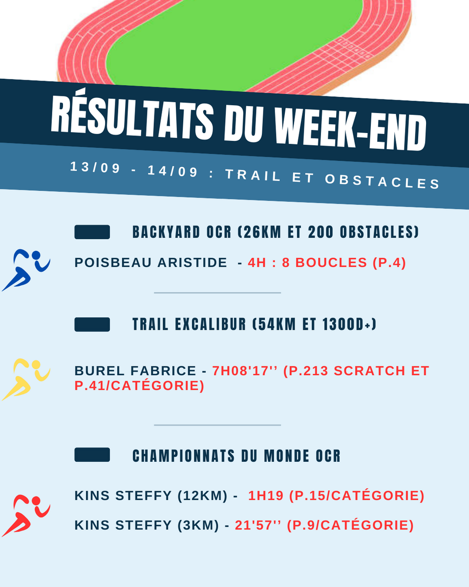 Bravo à tous pour vos courses, qui présagent du bon pour la rentrée. rendez-vous maintenant sur les prochaines courses sur route afin de continuer à faire monter la forme !