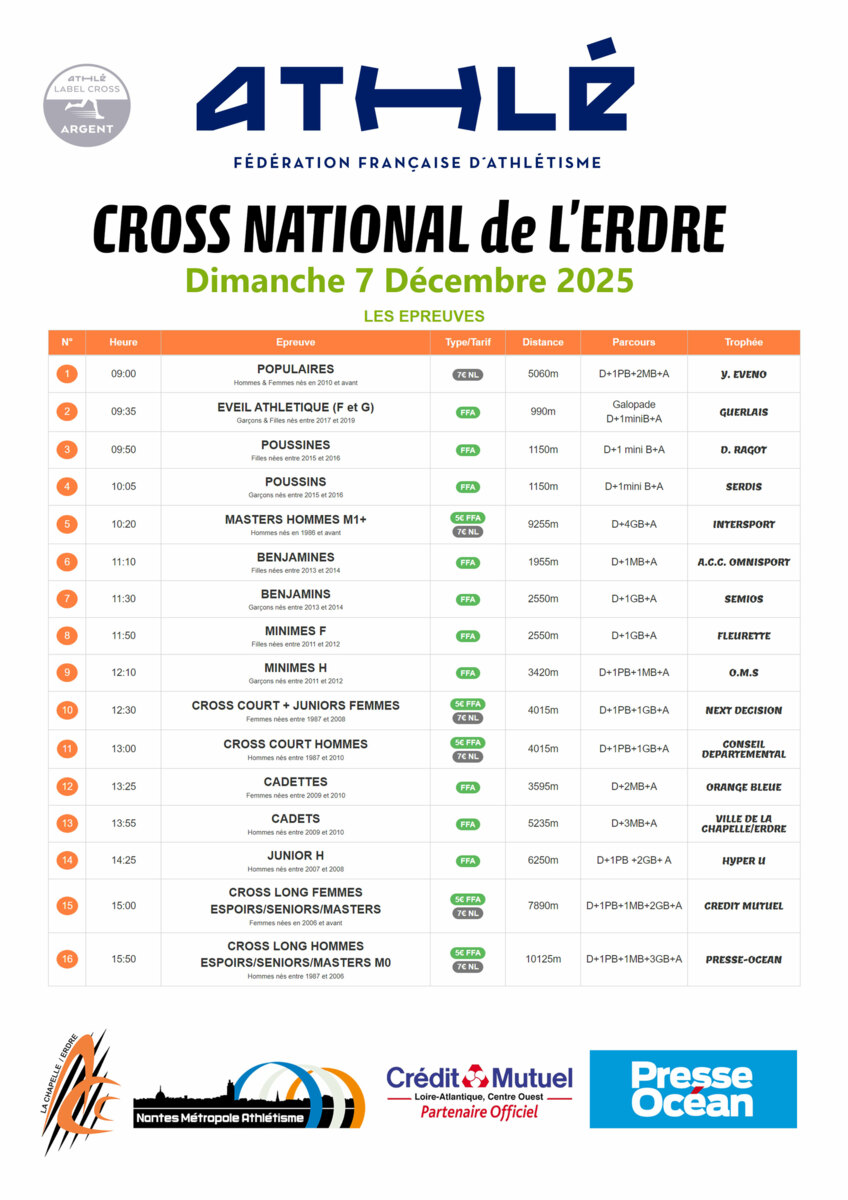 Les informations et les inscriptions sont à retrouver sur le lien suivant : cross national de l'Erdre